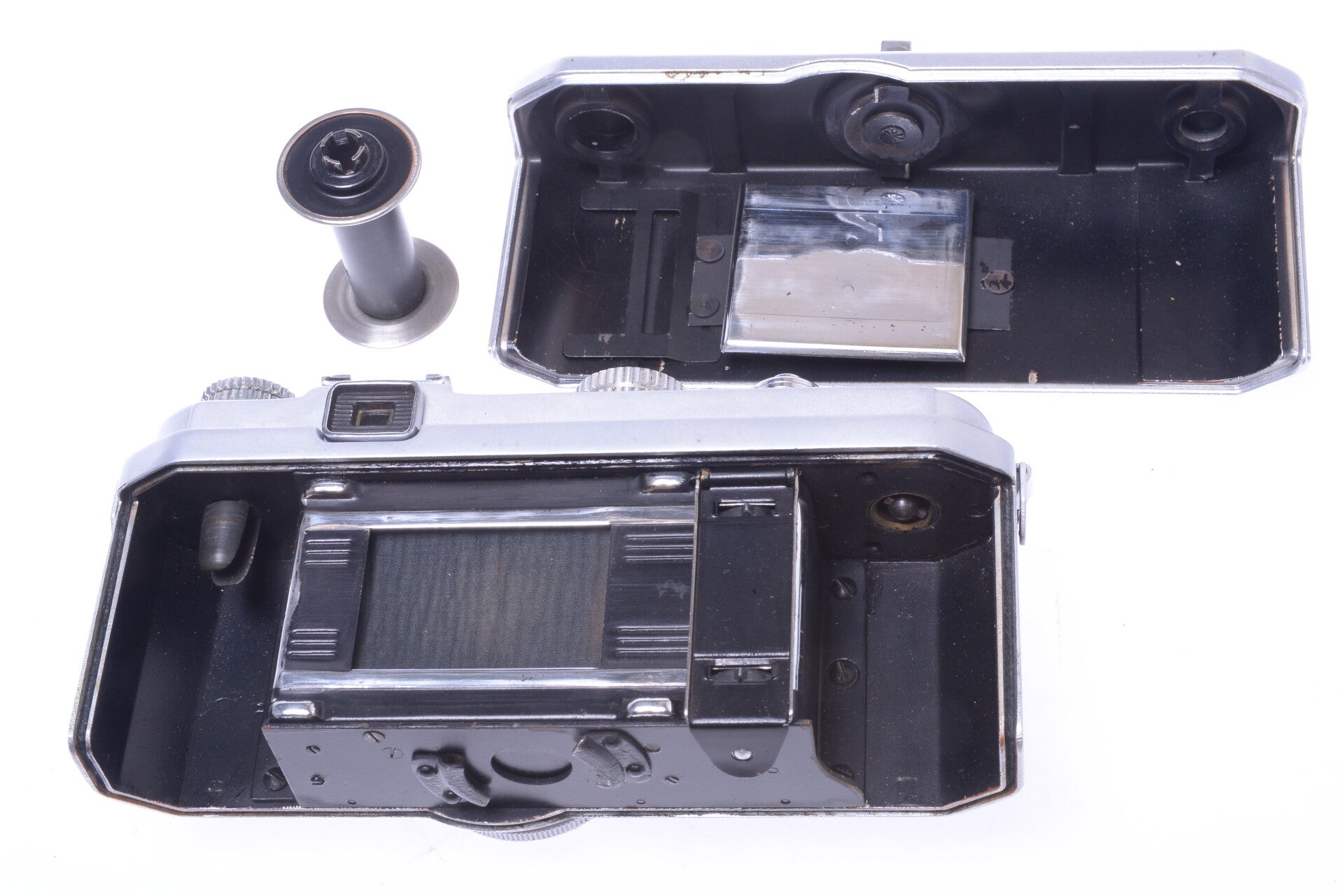 The lens is cosmetically and mechanically also in very good condition. Lettering is bright and clean. Shows no dings, no dents, no paint rub off, no scuff marks and no scratches. The elements are in very good condition. Minor cleaning marks, no scratches, no haze, no fungus, no separation. Shows no dust particles inside. Aperture blades show minor wear and are clean. Aperture an focus turn smooth. Comes with original film take-up spool.