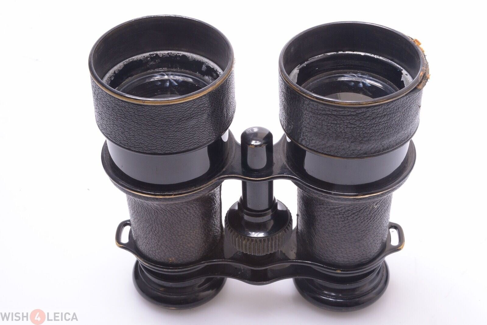 Overall the binocular are in good condition. Shows wear on metal parts, no dents, no dings, some scratches. Shows paint loss at the front element retainers. Shows wear on the leather cover and cover shrunk a bit on the hoods. The elements are in good condition, no separation, no haze, no cleaning marks, no fungus on or in between the elements. Shows some dust inside. The view is a bright and nice. The focus rings turns smooth. Comes with hard leather casing, strap missing and the binoculars fit perfectly in its case.