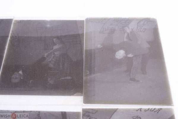 Glass plate pictures. Shows moderate signs of prior use.Some scratches, some small white spots, really not that much. Plates show no cracks. Nice contrast and pictures are in real life much brighter and show more contrast. Due to the studio flash they look dull. Location is unknown.