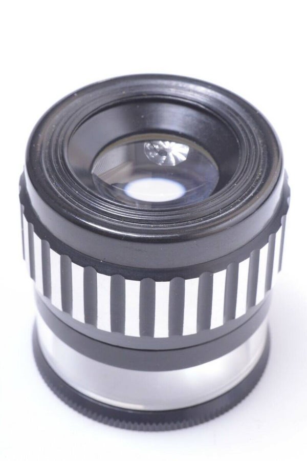 Magnifier shows no signs of prior use and is in very good, mint condition. Shows no scuffs, no scratches, no dings, no dents, no paint rub off. Glass elements bright, no dust particles and no other anomalies. No separation, no cleaning marks, no fungus, no haze, no scratches.
