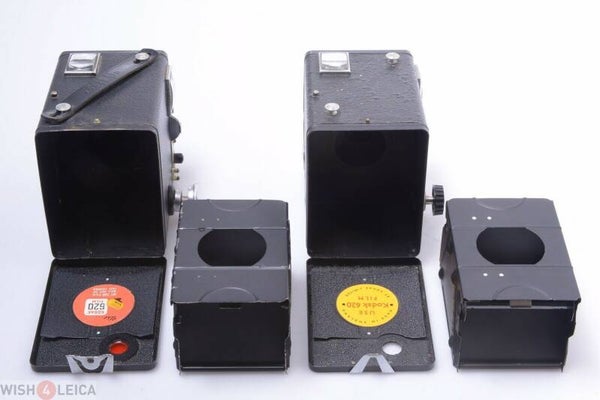 KODAK SIX-20 BROWNIE E & MODEL E FLASH BOX CAMERA 6X9CM 120 ROLL FILM ART DECO
