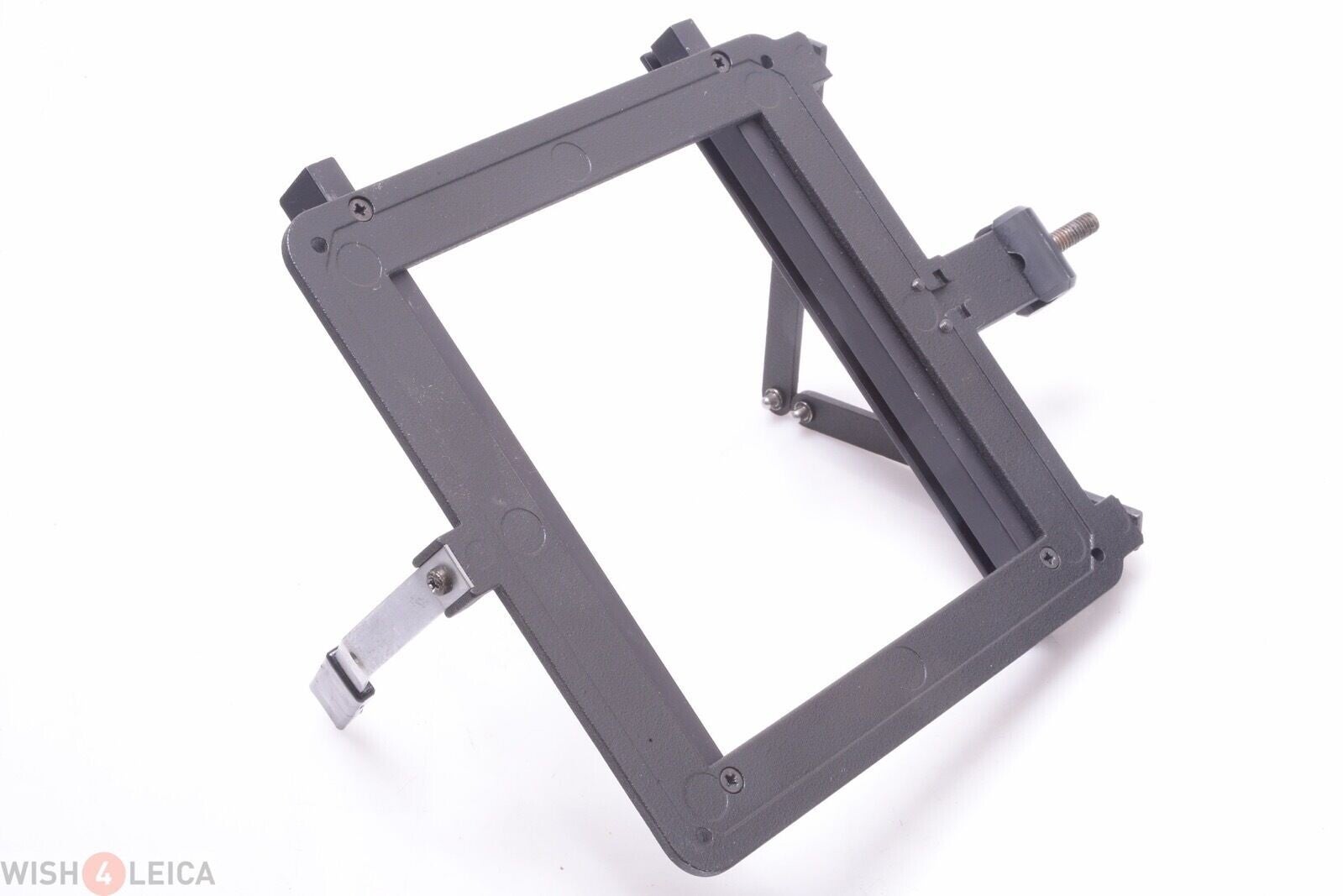 Holder is in overall fairlygood condition. It shows some signs of prior use. Some scuff marks here and there and some paint missing at the corners. It measures 159x159mm at the outside square and the square on the inside is 112x112mm. The rail measures 112x106mm. The two rods at the top, where these are attached to the holder, the side that hold the rods straight broke off. A comes thing to happen, but it still can be used