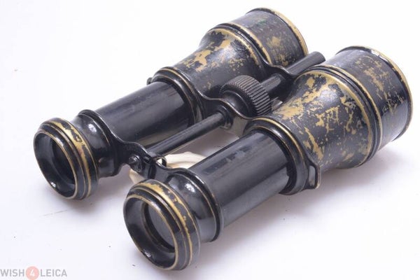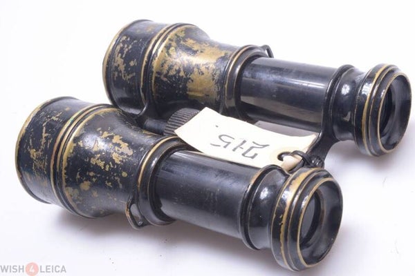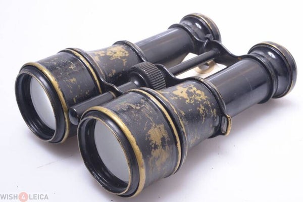 Brass binoculars are in good condition. All brass. Shows signs of prior use. Shows some dings, some paint loss, no major dents, and shows some scratches to the metal parts. Hoods slide smoothly and stay in place. The elements are in good condition, no separation, slight haze, no cleaning marks, some superficial scratch, no fungus on or in between the elements. Some dust particles inside. Eye-cups in good condition, shows small indentations right hand side. The focus ring turns a bit stiff. Size is 145x115x51mm.