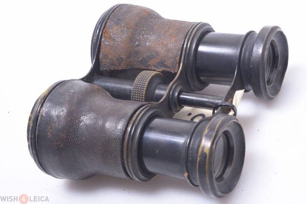 Binoculars are in good condition. All brass. Show signs of prior use. Shows some dings/small dents at the eye cups, no dents at the barrel, no dents, show paint wear, nice patina, and shows scratches and corrosion to the metal parts. The elements are in good condition, no separation, no haze, no cleaning marks, some small scratches, no fungus on or in between the elements. Some dust particles inside. View is bright. Cover original and complete, partial loose at one side and dry. The focus ring turns smooth. Size is 52x118X92mm.