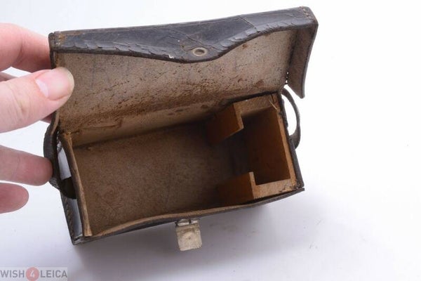 Original Kodak case is in overall very good condition. It shows some signs of prior use. It shows scratches and some scuff marks. Leather hardened and shows some cracks, but it is solid. 'Hinge’ and locks in good working condition.Inside measurements 6.5x7.5x10cm, 2.56x2.95x3.94”. Wooden film holder not measured.
