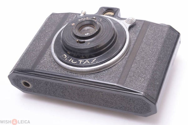 Camera is overall in good condition, with some signs of prior use. Finder is in good condition, but a bit cloudy. Camera shows no cracks and might not be light leak free, due to the part missing. Shows some scuff marks and scratches. Shutter working, also B setting doesn’t work. The lens elements are in good condition. Shows slight haze, no dust. Focus turns fairly smooth.