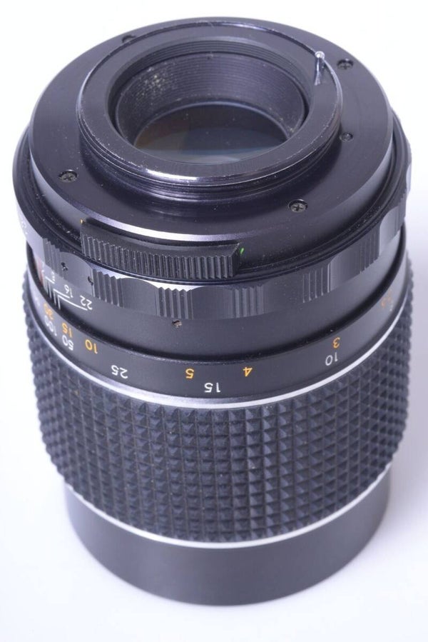 The lens barrel is in very good condition. The barrel shows hardly any signs of prior use. No dents, no dings, no scratches. The elements show no cleaning marks, no scratches, no haze, no fungus and no separation. It is a very good lens! Aperture blade are clean, but show some wear. Open and close perfectly and automatically when set. Focus ring turns smooth. Comes with generic front cap and case.