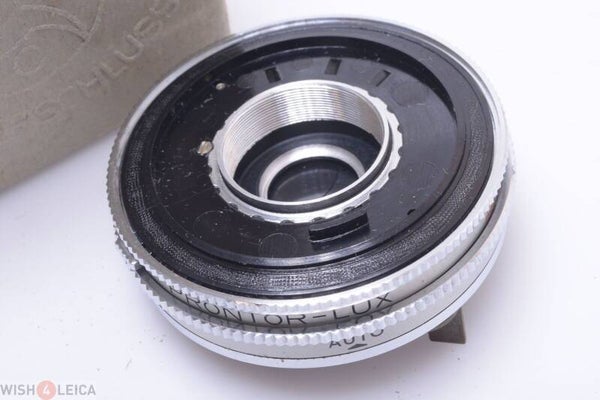 Shows no signs of prior use. All functions smoothly and as it should. For which camera it is is unclear.Diameter of the shutter is 56.5mm. Thread at the front is 22mm, at the rear 22mm. Screw thread diameter retaining ring is 25mm. Comes without retaining ring. Aperture works smooth and blades show no wear and are clean. Speed and aperture ring operate smoothly.