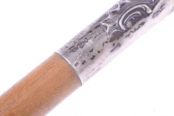 A real nice walking stick. Handle feels very good. It is 93.5cm, 37” in length. Nice cane, light weight. Weight is 106Grams, 3.75oz. C. 1910. Handle shows no knocks, few tiny dings and no dents. A nice example.