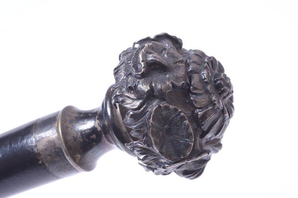 VERY ORNATE BEAUTIFUL FLORAL MOTIV HALL MARKED HANDLE! STURDY AND STRONG WOOD SHAFT!