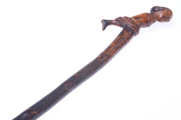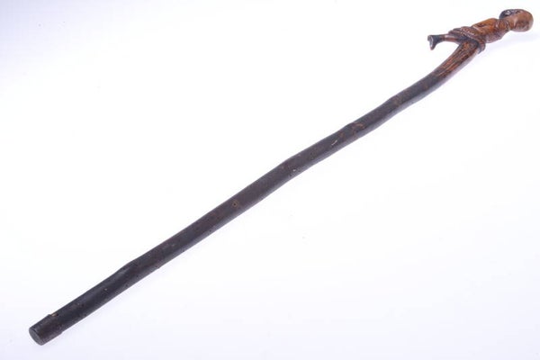 ANTIQUE CANE WALKING STICK FOLK ART HANDLE & SHAFT ARE ONE PIECE 67.5CM 26.57”