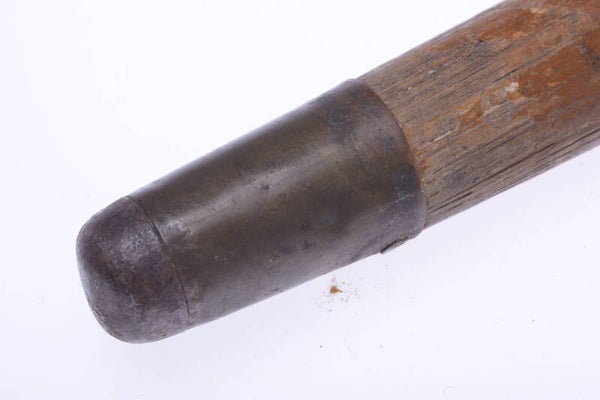 Shows some signs of prior use and is in good condition. Shaft shows minor scuffs and scratches, no cracks. Lacquer in fairly good condition, shows wear. Has a metal tip and a light weight slightly flexible wood shaft.