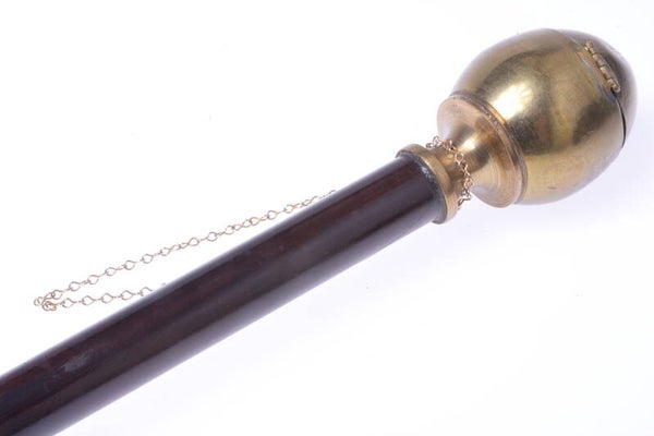 ANTIQUE COMPASS GADGET CANE WALKING STICK KNOB SHAPED BRASS HANDLE 90.5CM 35”
