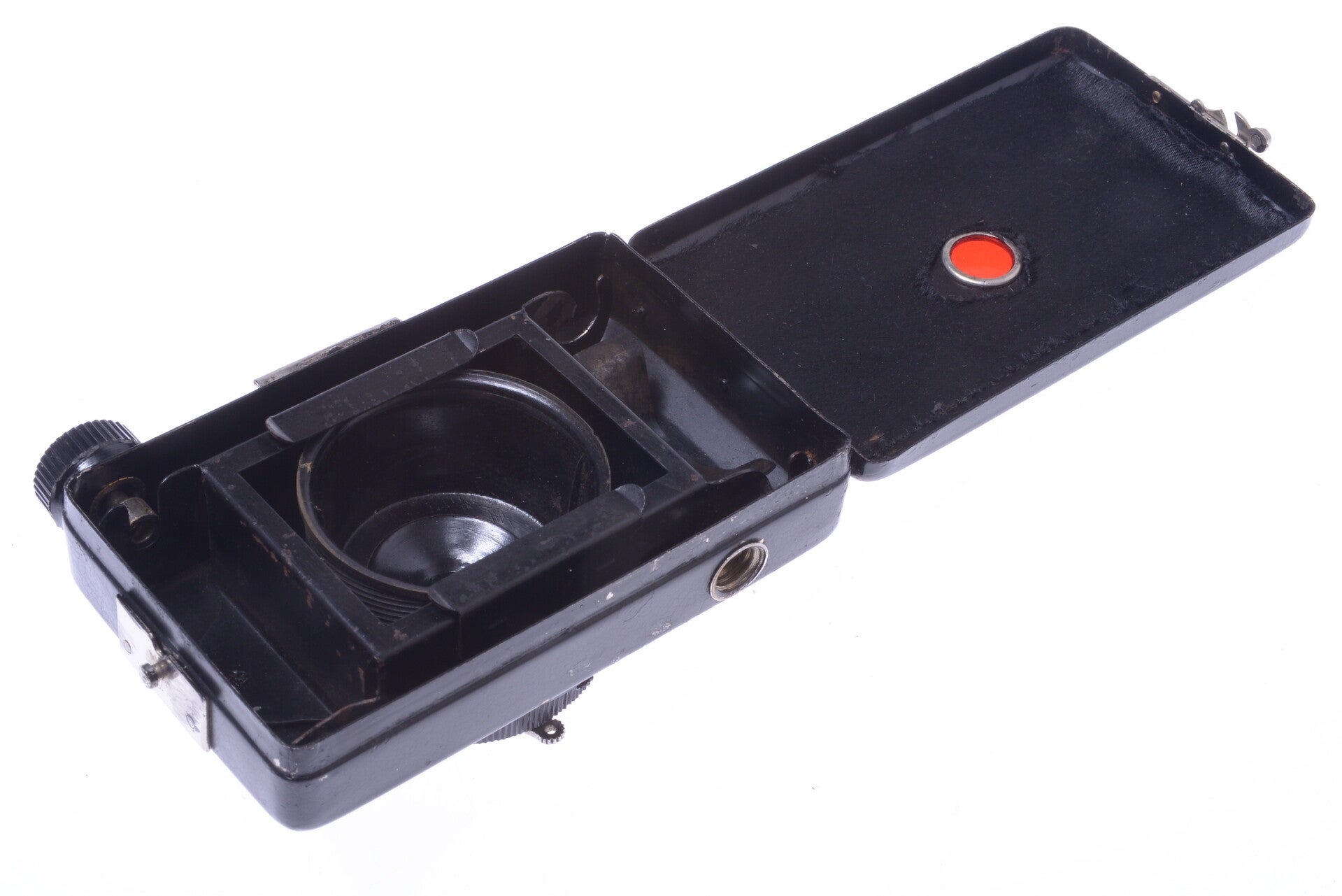 The lens is in very good condition. The elements in very good condition. No cleaning marks, no scratches, no haze, no fungus, no separation. Shows minor dust particles inside. Scarce camera.