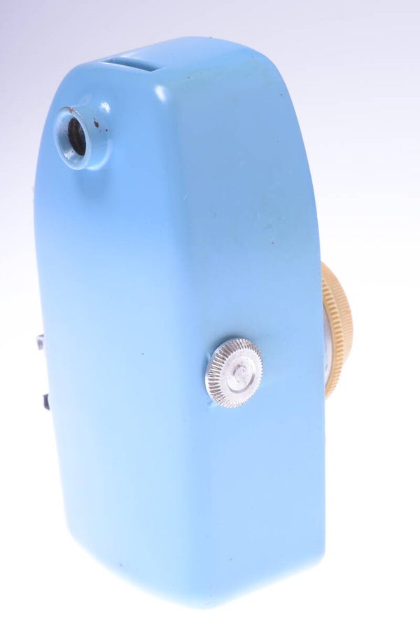 Shutter hangs, should be an easy fix. Light blue second model. Finder is bright and clean. Aperture ring is missing.