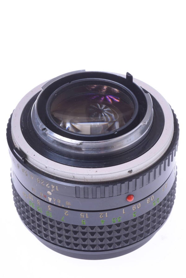 The lens is cosmetically and mechanically is in very good condition. Lettering is bright and clean. Barrel shows no dings, no dents, minor scuff marks and minor scratches. The elements are in very good condition. No cleaning marks, no scratches, no haze, no fungus, no separation. Shows no dust particles inside. Aperture blades show no wear and clean. Aperture open and close perfectly and very smooth. Focus turns smooth. Camera is ready for use.