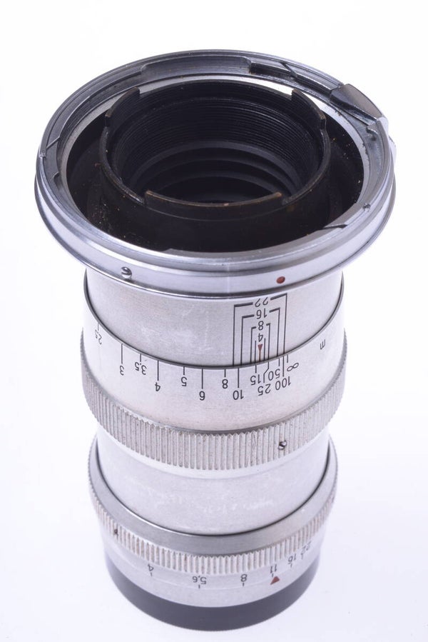 Lens shows some signs of prior use and is overall in very good condition. Shows some scuffing, small scratches, no dings, no indentations, no paint rub off. Aperture setting moves smooth. The elements are in very good condition. No cleaning marks, no scratches, very slight haze edge haze, no fungus, no separation. Shows no dust particles inside. Aperture blades show no wear and a tiny bit of oil on them. Focus turns smooth. Lens comes with caps. Rear cap original and third party deer skin leather pouch.