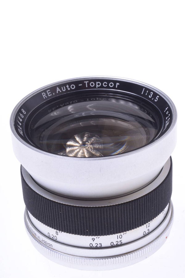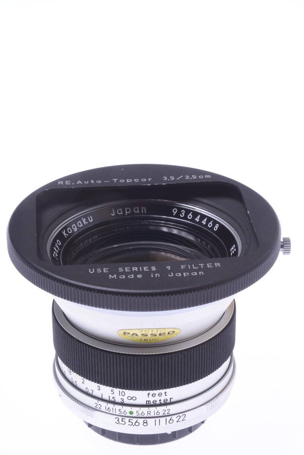TOPCOR 25MM 3.5 RE, AUTO MINTY* LENS EXAKTA, EXA, TOPCON BAYONET MOUNT W/ HOOD