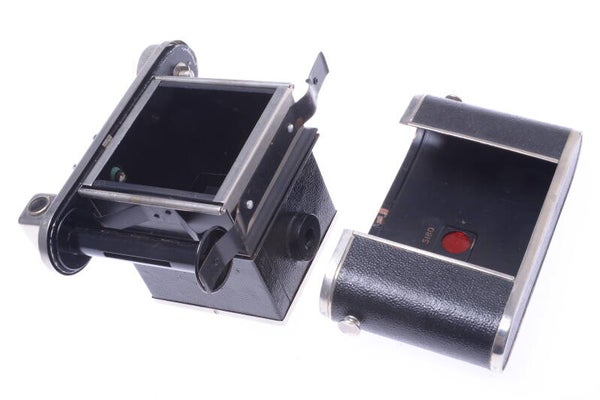 Camera shows some signs of prior use and is overall in very good condition. Shows some scuffs, minor scratches, no dings, small dent at the bottom, some paint rub off. Finder in very good condition, pretty bright. Cover is original and complete. Cover shows minor wear, minor scuffs and scratches.