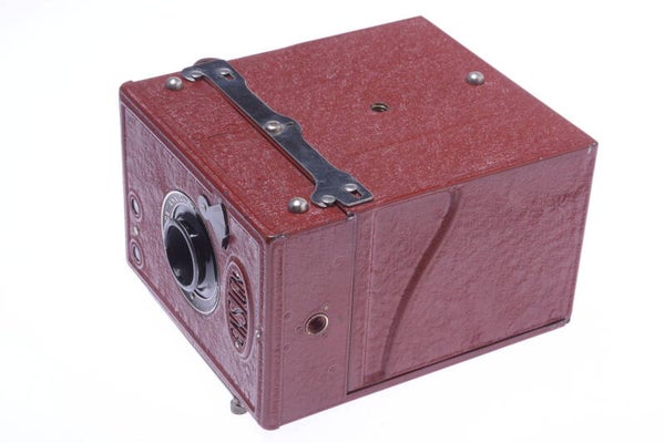 HOUGHTON ENSIGN RED COLORED ALL DISTANCE BOX 120 ROLL FILM CAMERA 6X9CM RARE*