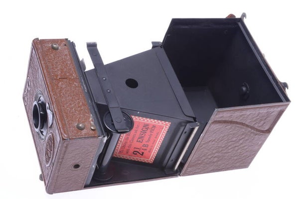 HOUGHTON ENSIGN BROWN COLORED ALL DISTANCE BOX 120 ROLL FILM CAMERA 6X9CM RARE