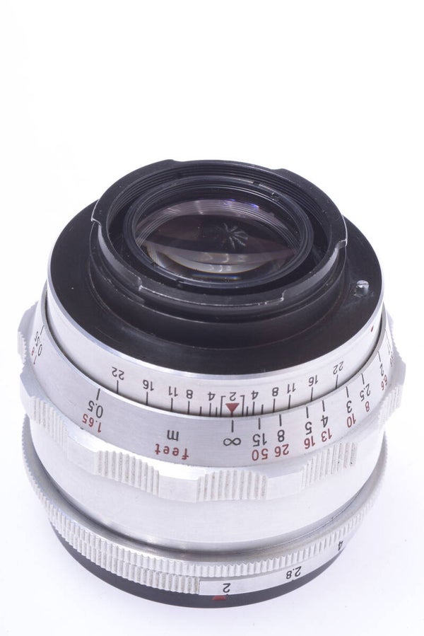 Lens shows minor signs of prior use and is in very good, minty condition. Shows really minor scuffs, no scratches, no dings, no indentation, some paint rub off at the front edge. Aperture setting moves smooth. The elements are in very good condition. No cleaning marks, no scratches, no haze, no fungus, no separation. Shows no dust particles inside. Aperture blades show no wear and are clean. Focus turns smooth. Lens comes with original front cap.