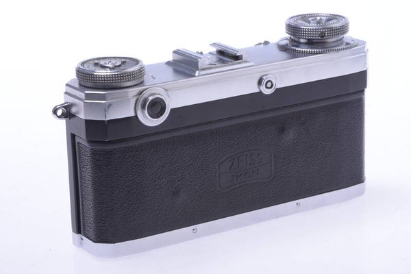 Camera shows minor signs of prior use and is cosmetically in very good, minty condition. Shows minor scuffs marks, 2 small superficial scratches at the bottom, no dings, no dents on the camera. Finder in very bright and clean condition. Camera shows no wear at the original cover, at the rear two bumps. Film winds on smooth, counter works. Comes with take-up spool. Focus turns very smooth.