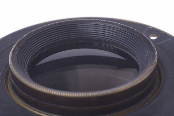 UNMARKED ANTIQUE BRASS LENS F/8 ‘210MM’ 4X5” LF CAMERA W/ APERTURE