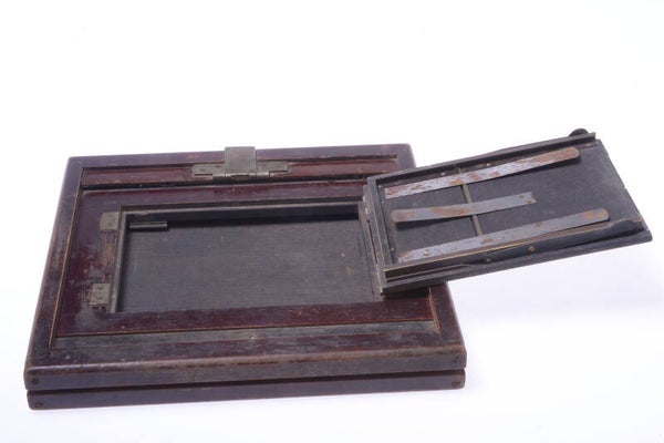 ANTIQUE 28.5x28.5CM STUDIO CAMERA 13X18CM GLASS WET PLATE HOLDER SLOTTED