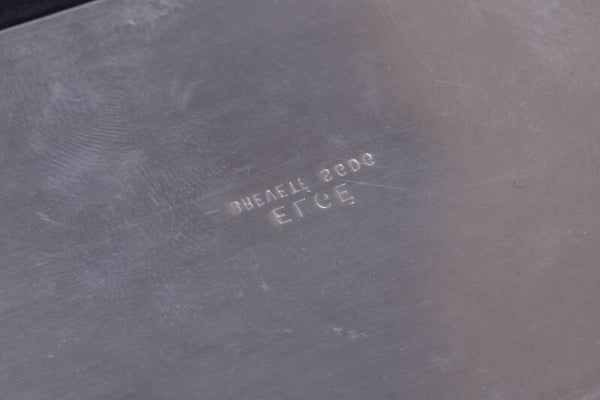 Quality build plate holders. Nickel plated. Original pull lip still attached. Comes in felt pouch. Pouch has a small hole.