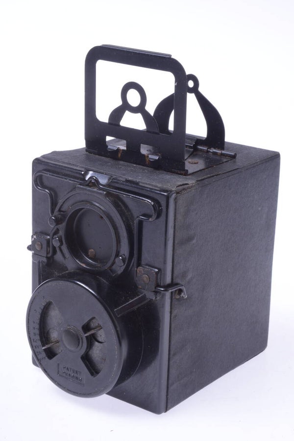 Shutter works. Metal parts show some superficial corrosion. Comes with original makers boxes and original instructions Box top and bottom are complete and show tears and wear. Very rare set.