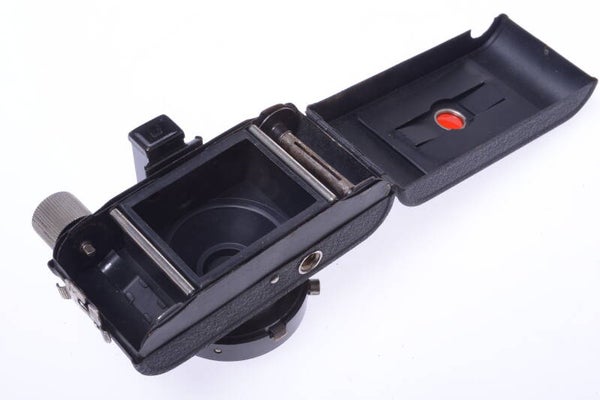 Camera shows minor signs of prior use and is in very good condition. Shows no scuffs, few tiny scratches, no dings, no cracks, minor paint rub off. Film winds on smooth. Comes with 1 original take-up spools. Finder view is in good condition, slight haze.