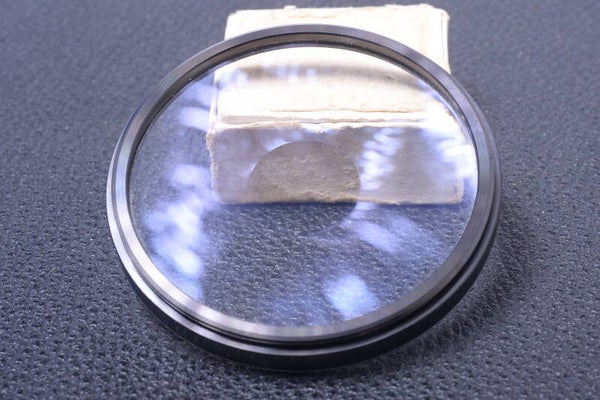 Glass shows no wear, cleaning marks or scratches. With plastic case.