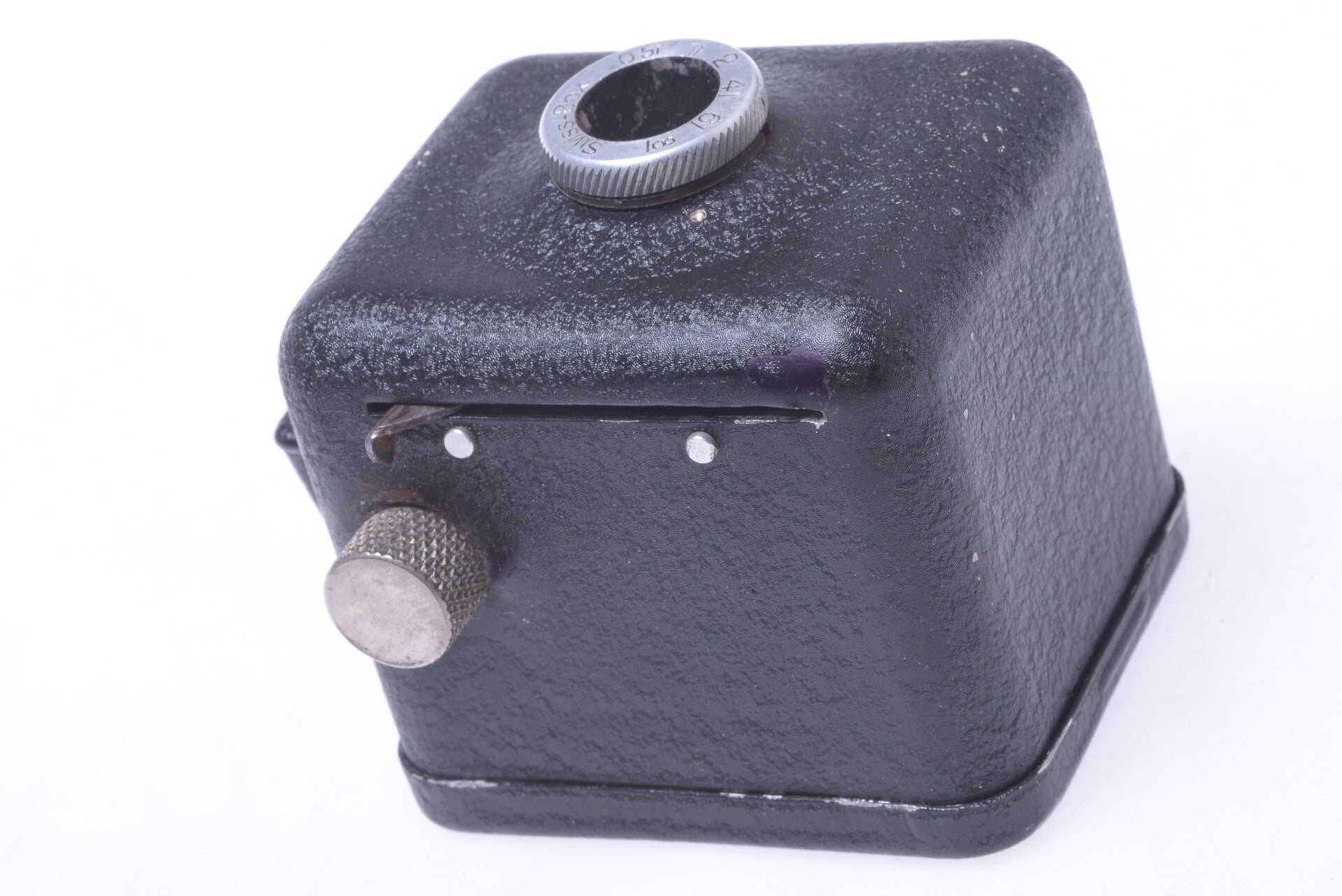 Note this is the more uncommon model with only the Swiss Box name on the lens and on the case.