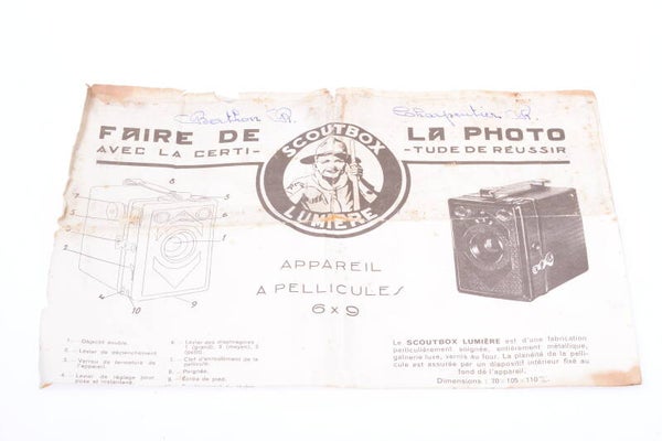 LUMIERE SCOUTBOX ‘PHOTO PLAIT' BOX CAMERA 6X9CM 120 ROLL FILM 1934 MODEL