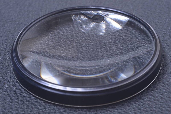 Glass shows no wear, cleaning marks or scratches. With plastic keeper.