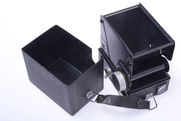 Shutter works, speed is accurate, B setting works. Inside the camera shows really minor superficial corrosion. Handle is original.