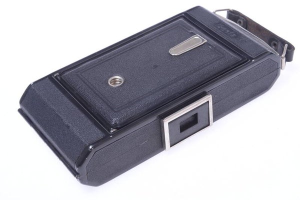 Camera shows some signs of prior use and is in very good condition. Shows minor scuffs, minor small scratches, minor paint rub off, no dings, no dents. Finder is in good condition, shows some deterioration, view still pretty good. Bellows pulls out smoothy and is light leak free. Lens unit erects nicely. Focus turns very smooth.