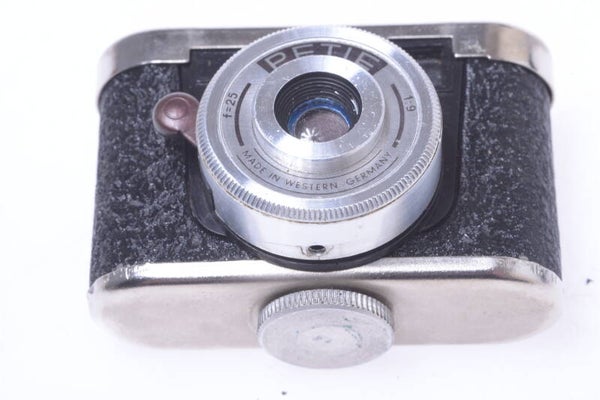 WALTER KUNIK PETIE CAMERA 16MM FILM W/ 25MM LENS & CASE *MISSING REWIND KNOB*